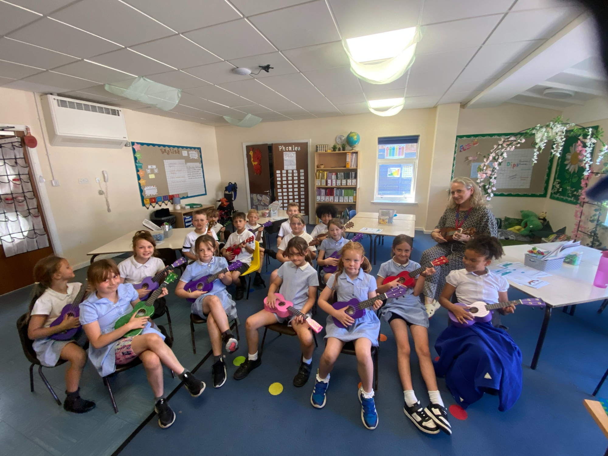 Mrs Hall taught Otter class the Ukulele on transition day, what a wonderful opportunity!